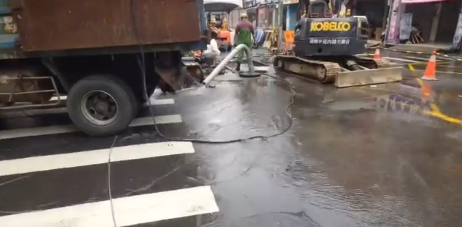 民進黨籍桃園市議員黃瓊慧說,桃園中正二街、中正路口自來水破管,造成周邊長安里、永安里等好幾里都停水。目前台水有先派員抽水處理,但因為抽水一時半刻抽不完,會請人潛水作業另做閥門讓周遭民眾能先復水。