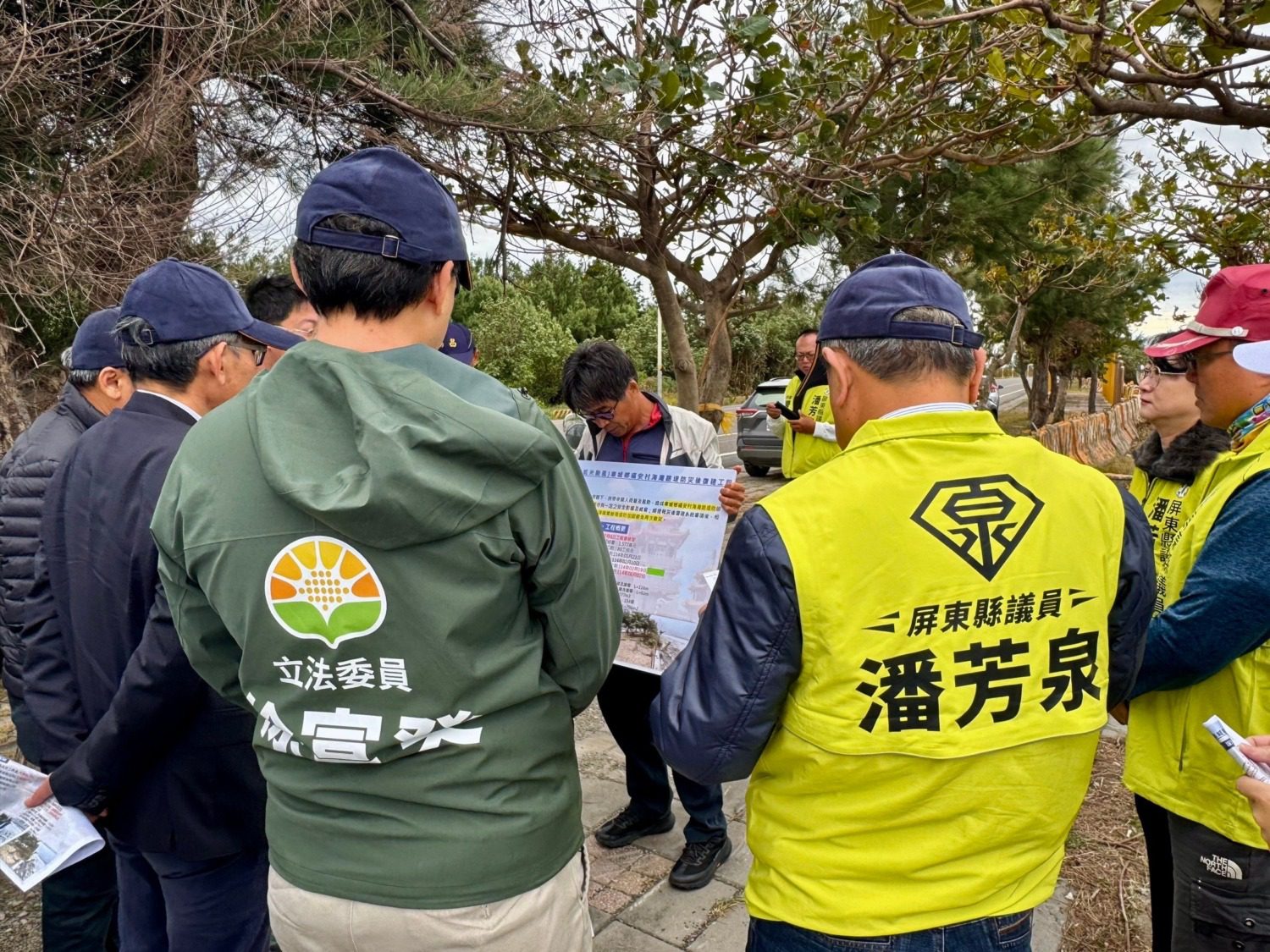 徐富癸邀集賴署長、第七河川分署署長李宗思及屏東縣政府水利處處長江國豐等人前往車城、佳冬、東港、萬丹等地現場勘查水利設施,議員潘芳泉、羅平道、許展維、劉孟君及多位代表及村長也到場關心,希望儘早解決水患問題。