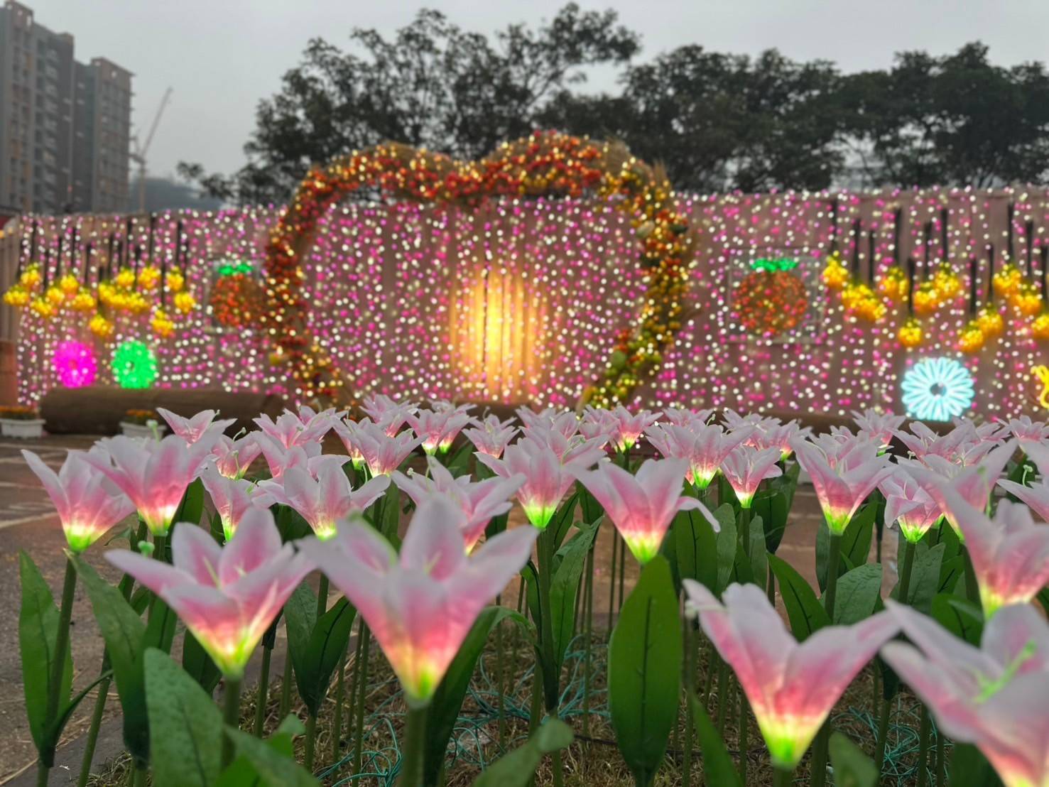 今(14)日是西洋情人節,主燈展演場(A19高鐵桃園站)主燈旁邊「桃園好農市集」特別適合有情人,因為桃園是草花之都,燈區布置各種草花和浪漫花卉彩燈,如彩色海芋、蓮花、百合等非常適合拍照。桃園市政府農業局公開「桃園好農」燈區「告白路線」,沿著5大浪漫打卡點,一路拍照、最終鼓起勇氣說出想說的話。