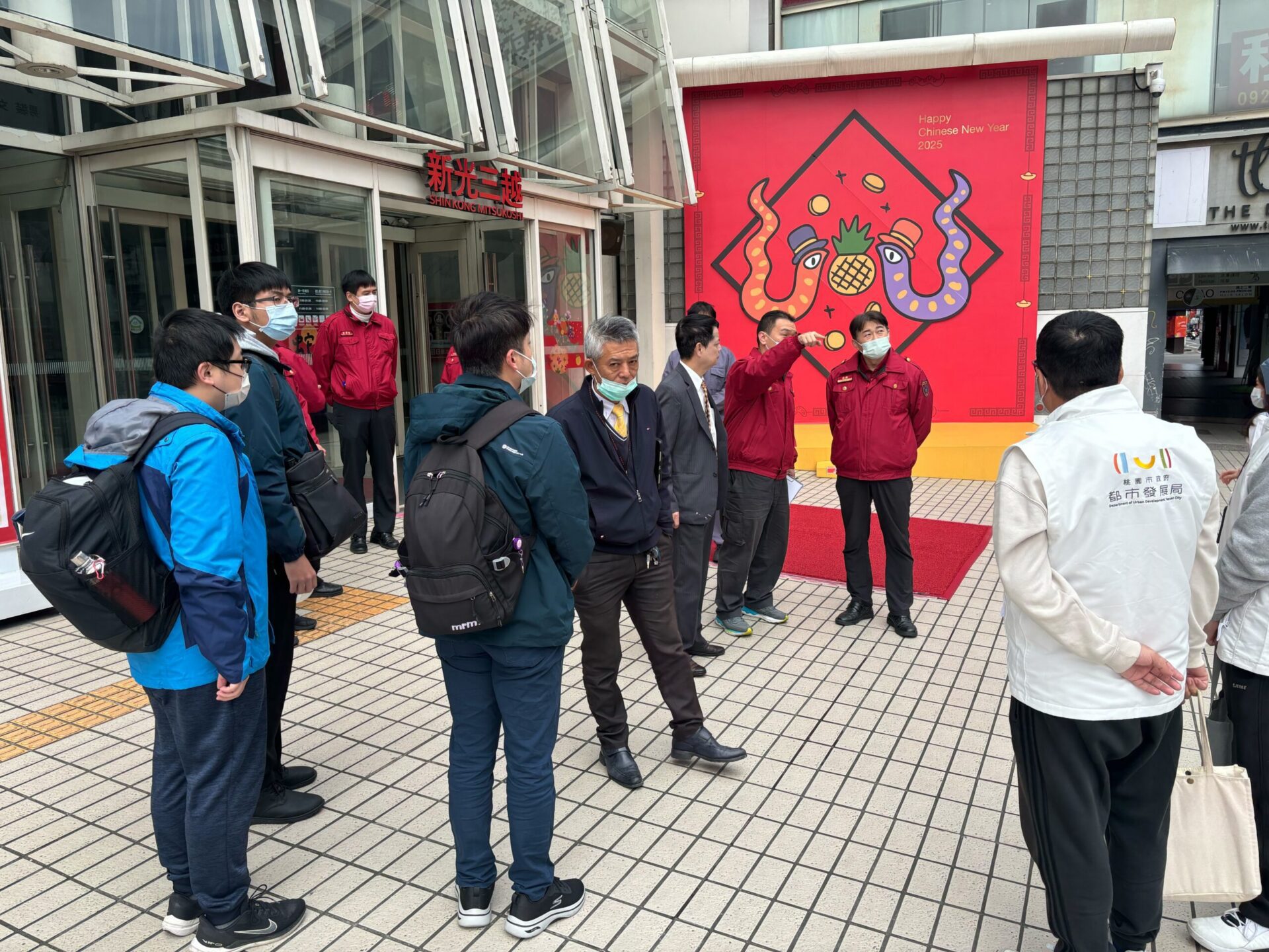 桃園市政府聯合稽查小組今(14)日會同建築管理處、經濟發展局、消防局、勞檢處等單位,針對百貨商場等人潮眾多場所進行聯合稽查,並特別督導美食街與施工範圍等用火用電區域加強消防安全設備與防火避難設施,讓市民消費更安心。