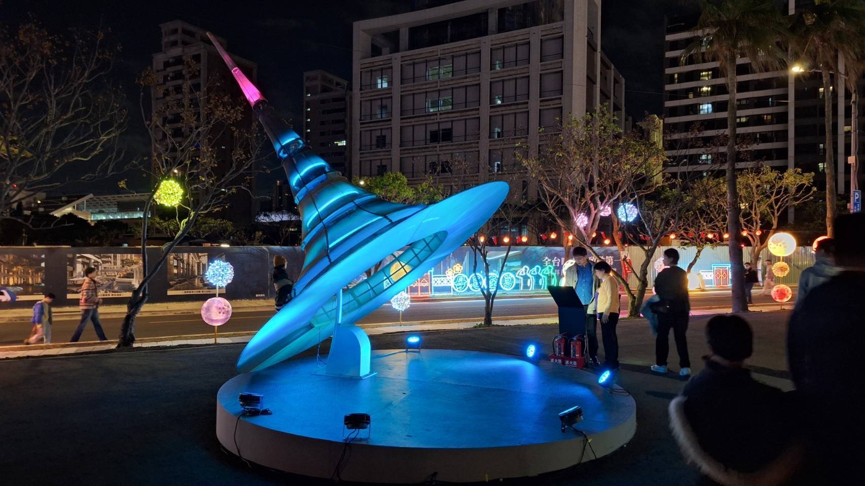 此外,「城市聚光燈」燈區還有以閩南和眷村意象創作的燈飾畫,有將閩南傳統技藝春仔花的作品意象融入燈飾畫視覺,也有運用吉慶諧音的花瓶(平安)創作,以不同的燈飾畫呈現多樣閩南文化與精神。而桃園著名的眷村文化當然也少不了,近年活化再利用成為文化場所的眷村鐵三角,也將其精神意象再次重現,引領民眾欣賞回憶。