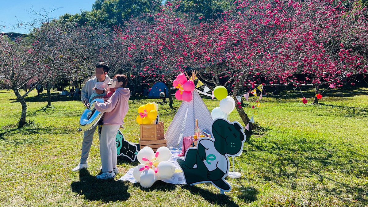 國立暨南國際大學擁有全國最美校園的美譽,並連續八年名列全球前50大綠色永續大學。今年櫻花林內的山櫻已綻放五成,八重櫻接力盛開,雪白李花點綴其中,與藍天綠地交織出一幅春日畫卷。活動現場,許多遊客攜家帶眷,在櫻花樹下鋪上坐墊野餐,沉浸於民歌手王業與陳志宏深情演繹的《甜蜜蜜》、《橄欖樹》、《天天想你》等經典曲目中,為這場春日聚會增添濃厚的文藝氣息。