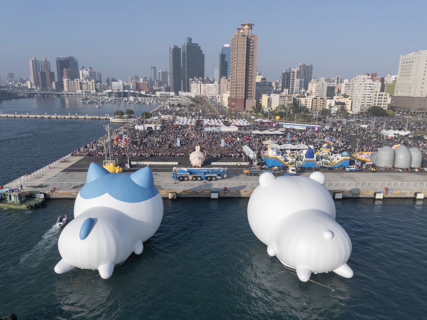 高雄市政府表示,本次「2025 Kaohsiung Wonderland高雄冬日遊樂園」自開幕以來已吸引超過600萬人次參觀,為高雄創造逾100億元的觀光產值。「吉伊卡哇」首次以大型立體化氣膜亮相,並搭配浮台設計,從1月25日開幕進港至2月9日遊港,成功繼黃色小鴨後,再次締造海上動態展演的世界紀錄。閉幕活動作為燈會壓軸,吉伊卡哇第三度進行動態遊港,不僅現場吸引超過18萬人參與,線上同步觀看人次更突破20萬,同時展現高雄頂尖的造船與海事工程技術。本次展出的吉伊卡哇、小八貓及兔兔分別位於珊瑚礁群旁、音浪塔前海面及碼頭樂園,活動橫跨海上、陸域及鹽埕、苓雅兩大行政區,讓民眾能從不同視角欣賞三隻小可愛與愛河灣的美麗景緻。