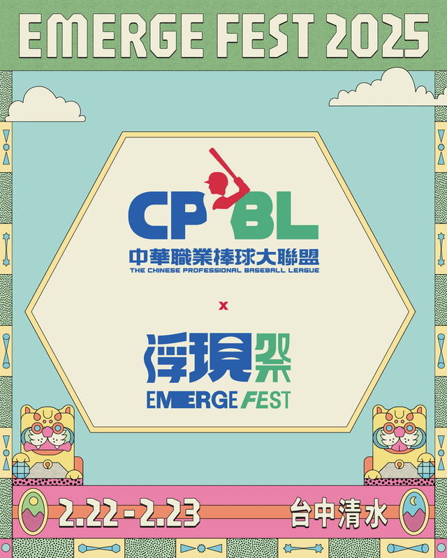 中台灣最代表性的冒險音樂祭「浮現祭」即將於2月22日至23日在台中清水開唱,今年再創全票種完售佳績,自2019年開辦以來演出門票連五年售罄,成為台灣新年最受歡迎的指標音樂節;今年更號召近百組演出者匯聚清水演出。適逢2025年經典賽資格賽,浮現祭與中華職業棒球大聯盟(CPBL)進行合作,邀請樂團 P!SCO 合作職棒啦啦隊演出彩蛋驚喜節目!
