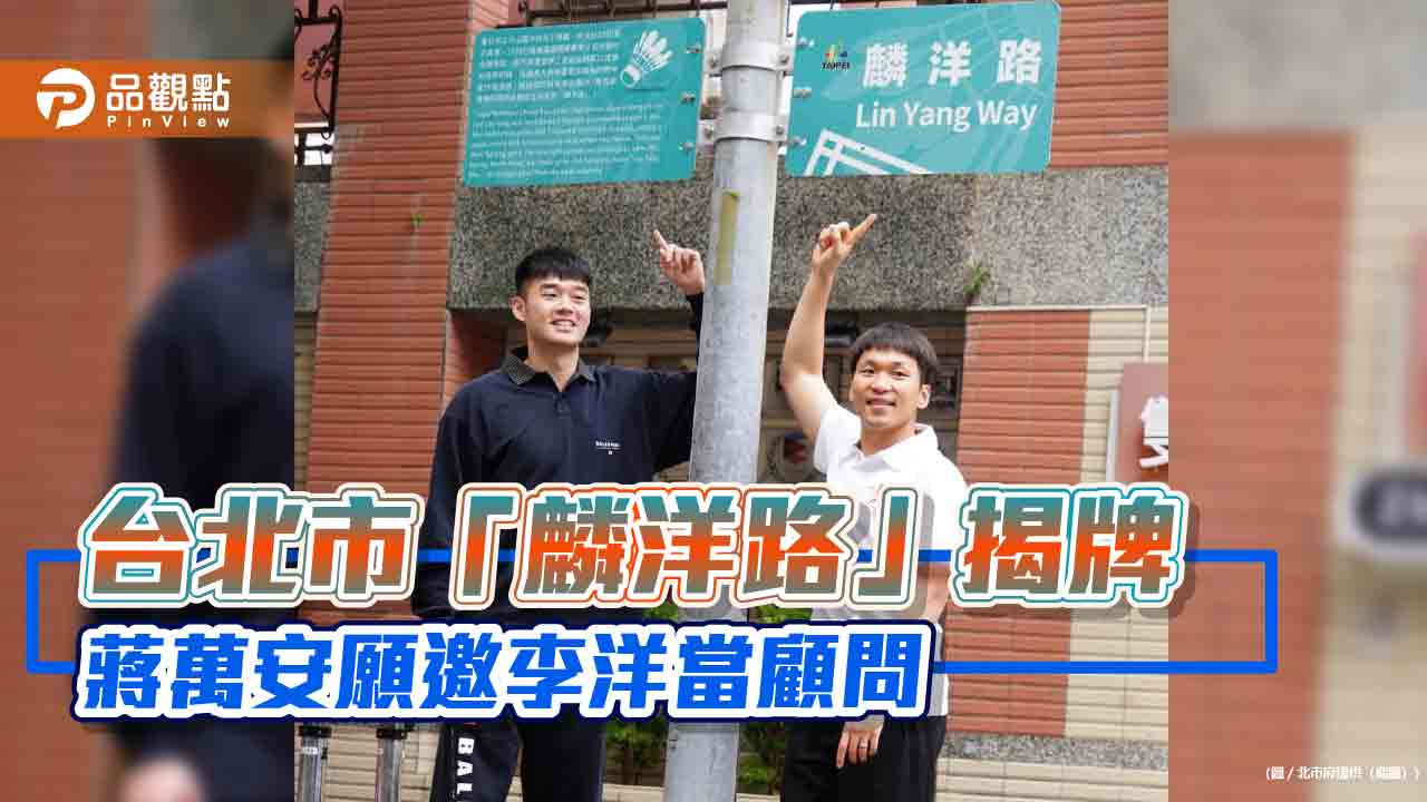 為紀念奧運羽球國手李洋、王齊麟二度奪冠,台北市政府將二名選手國中母校門口的復興北路361巷,增設別名為「麟洋路」,今(17)日舉行揭牌儀式,台北市長蔣萬安表示,未來非常歡迎邀請李洋擔任市府的顧問,在未來設計興建國陳羽球場館時,邀請各位習球選手、教練來給予建議。