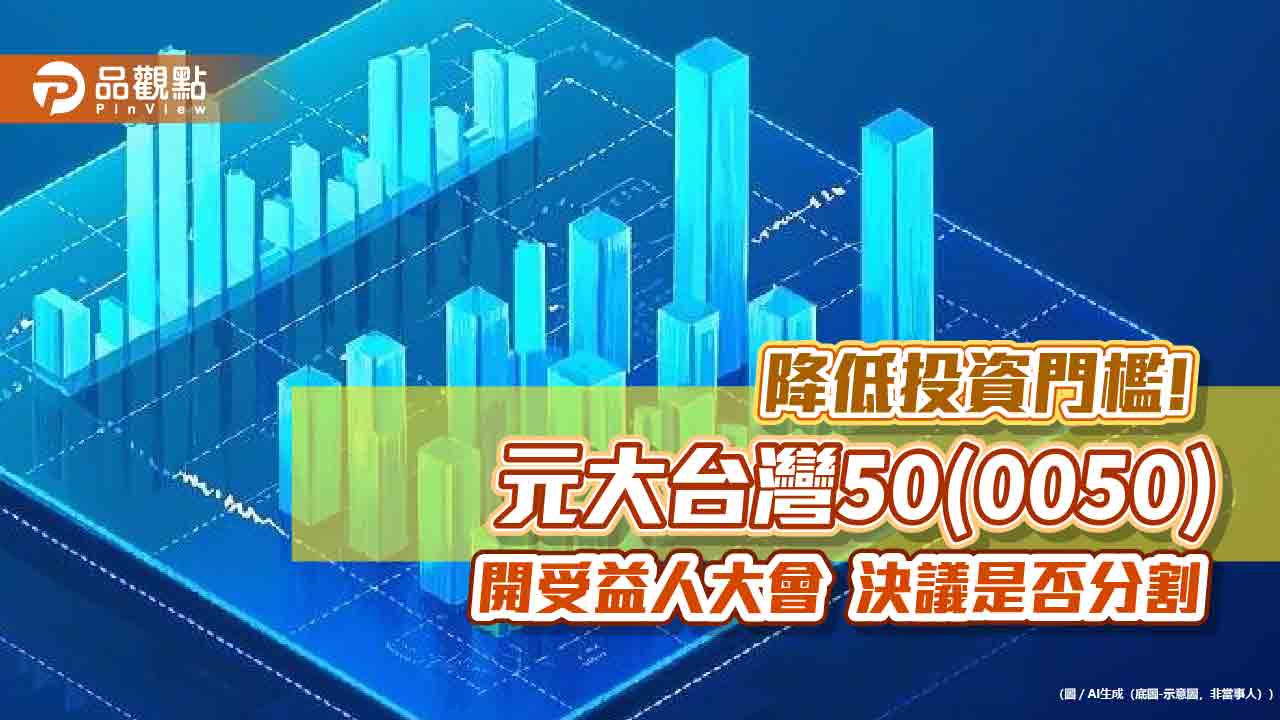 至於分割議案是否通過,須經持有代表已發行受益憑證之受益權單位總數1/2以上的受益人出席,並經出席受益人的表決權總數1/2 以上同意。若通過,0050將以受益人會議當日(4月24日)基金淨值為基準,採回到發行價36.98元以上之最大整數倍為分割倍數,進行每單位淨值與持有股數的調整。