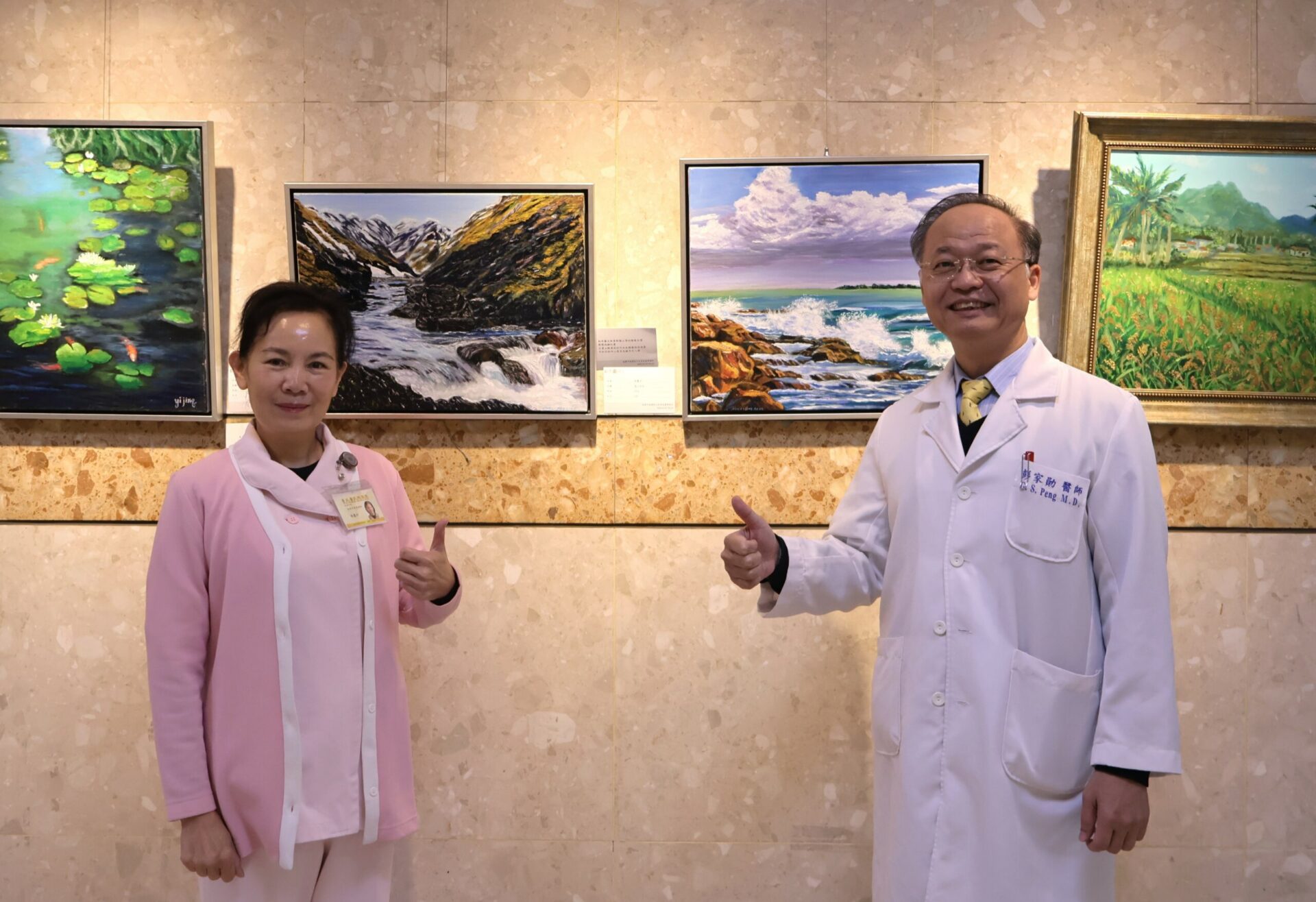 經過一年不懈努力,在大有里里長的推廣下,由桃園市文化局與北榮桃分院共同主辦,於今(114)年1月1日在北榮桃分院文化走廊舉行首次聯展,陳列了她多幅精心創作的油畫作品。展覽期間,不僅獲得上級長官的高度肯定,亦受到同事們的熱烈鼓勵與祝福。她表示未來將持續精進技藝,創作更多融合情感與心靈的作品,讓藝術學習之路更加豐厚多彩、更上層樓。
