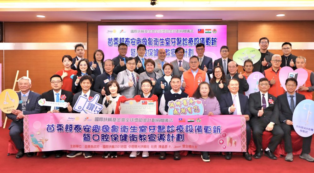 這項捐贈全新牙科設備儀式今(2/18)日在苗栗縣政府舉辦,苗栗縣衛生局楊文志局長代表受贈,健保署北區業務組組長林寶鳳代表出席,苗栗縣政府鍾東錦縣長、中華民國牙醫師公會全國聯合會理事長江錫仁、牙醫師公會理事長謝喬均、大千綜合醫院總裁徐千剛,以及國際扶輪3501地區2023-24年度總監張世澤、2024-25年度總監周玉庭、泰安鄉長陳吉基、泰安鄉梅園村村長陳福星、象鼻村村長楊惠福、士林村村長黃盛哲等貴賓,均共襄盛舉見證這場極具意義的捐贈盛會。會中林寶鳳組長向國際扶輪社善舉及苗栗縣牙醫師公會組醫療團,將醫療服務送進偏鄉,表達謝意。