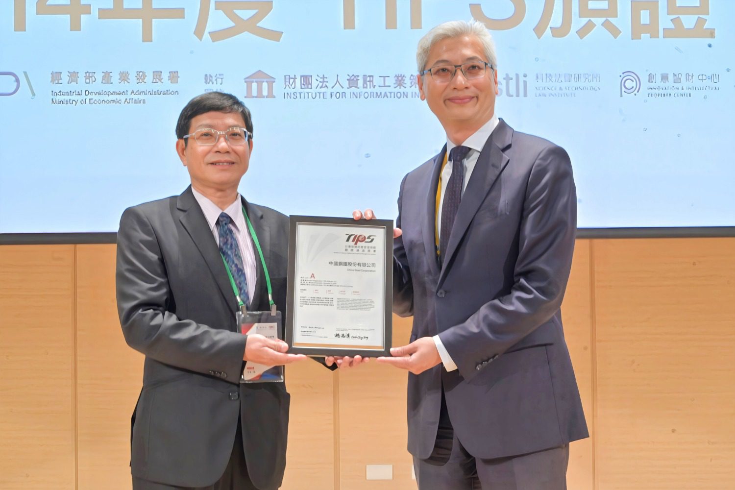 為妥善管理及運用智慧財產資源,同時降低智財侵權風險,中鋼於2020年第3季開始導入「台灣智慧財產管理制度」(以下簡稱:TIPS),完成專利及營業秘密盤點及完善管理制度,2021年11月首次通過實體驗證審查後,2022年再將商標與著作權管理納入TIPS驗證範圍並獲認可。中鋼去年再度通過資策會TIPS審查驗證,今(2/20)日陳守道總經理出席經濟部產業發展署舉辦之頒證典禮,代表公司接受副署長鄒宇新頒發A級證書,展現智財管理與創新保護的卓越成效。
