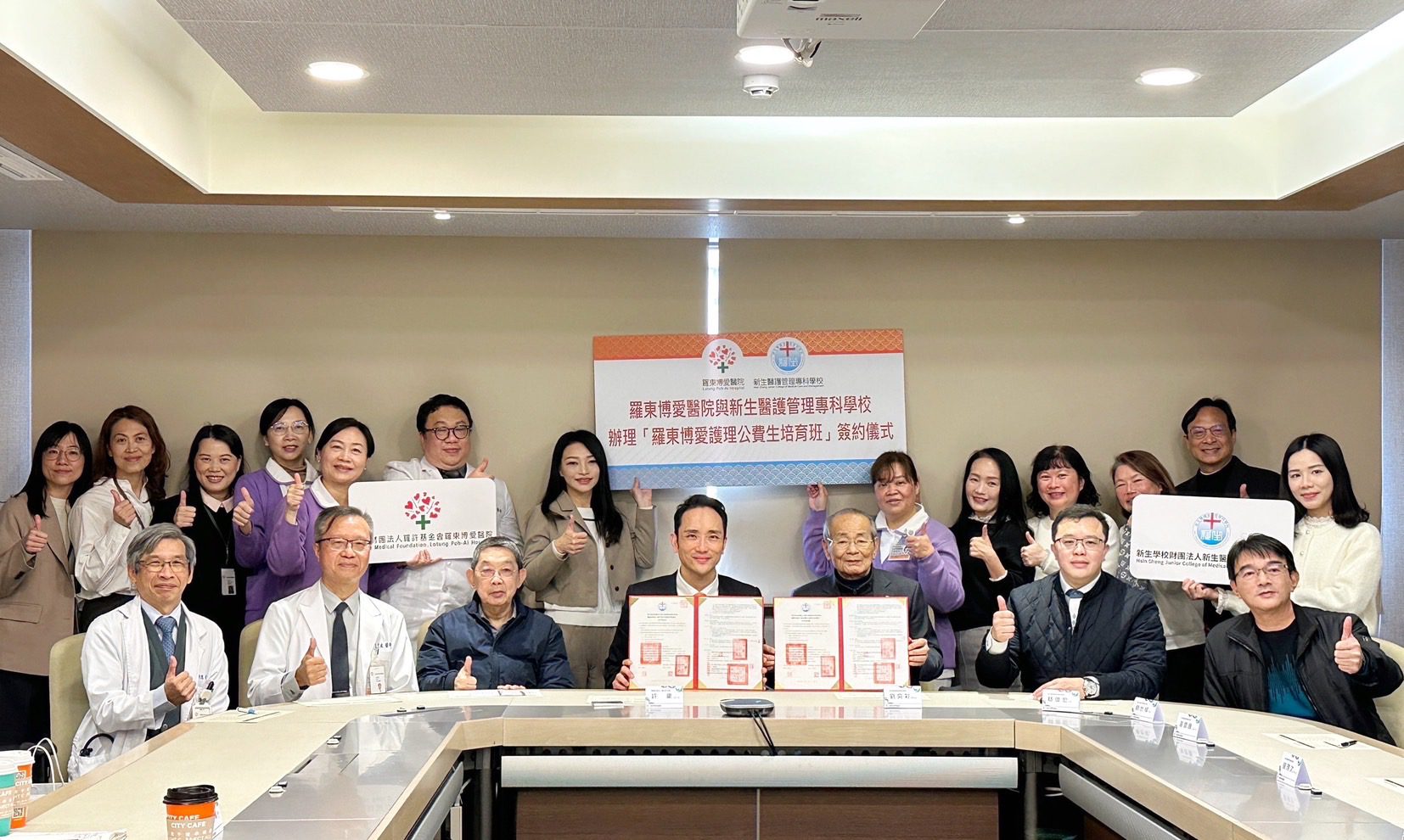 為培育優秀的醫護人才,提升偏鄉醫療服務品質,新生醫專昨(20)日由董事長劉奕彩、校長駱俊宏帶領護理科行政團隊一行人到宜蘭,與羅東博愛醫院正式簽署公費生培育班合作計畫,此次雙方締約合作,每年將提供50名優秀學生公費培訓機會,每學期可獲得6萬元獎助學金,減輕學習負擔,此計畫適用於今(114)年9月入學的新生,為宜蘭地區學子帶來佳音,同時鼓勵學生於畢業後投身醫療服務,造福地方社會。