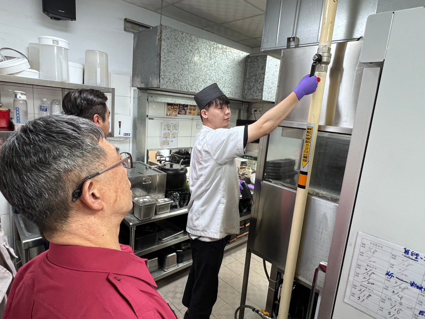 為避免類似氣爆事件再度發生,高雄市政府消防局第二大隊第一中隊大昌分隊於114年2月19日,由第二大隊第一中隊中隊長余泰運及大昌分隊分隊長謝麟隆率隊前往轄內家樂福鼎山店進行安全巡檢。本次巡檢重點包括:檢查燃氣設備及瓦斯管線是否安全、有無漏氣情形,確認瓦斯緊急自動遮斷系統及廚房滅火設備是否正常運作,抽測員工對相關設備的操作熟悉度,並測試防火管理自衛消防編組人員的任務執行能力。