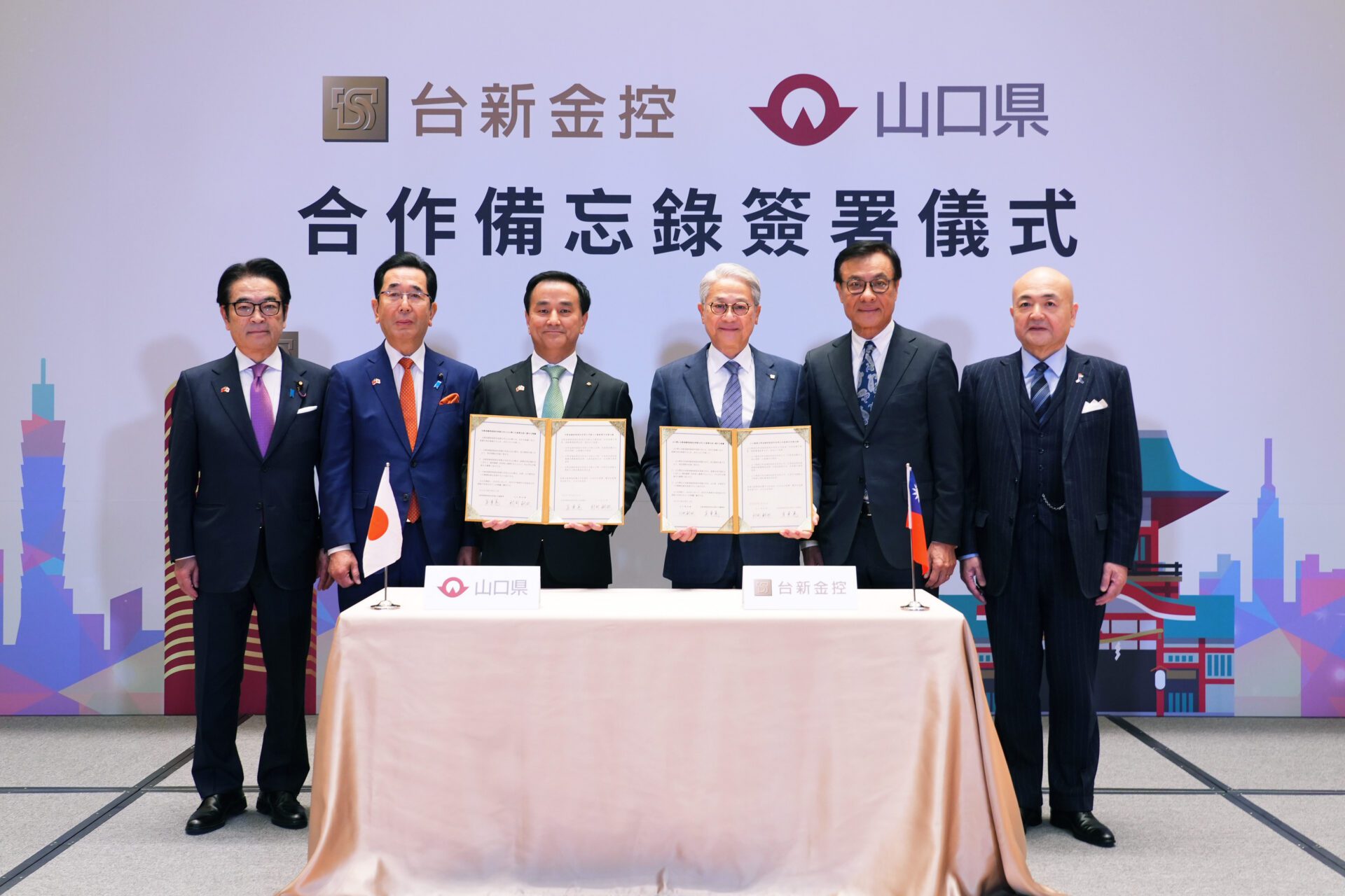 台新金控今(21)日與日本山口縣政府簽署合作備忘錄(MOU),由山口縣知事村岡嗣政與台新金控董事長吳東亮代表締結,這是首度有日本地方政府跨海來臺與金融機構簽署備忘錄,未來雙方將運用各自資源和優勢,攜手為臺日企業提供更全面支持,促進商業、經濟與金融等多領域的產業交流與合作,為深化臺日經貿關係與共同發展開創機遇。