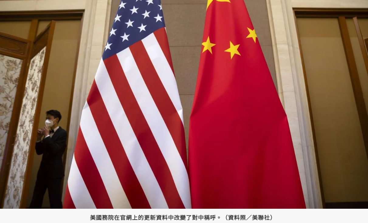 美國國務院再度更新網站資料,在涉及中國大陸的描述時,皆以「中國」(China)或「中共」(CCP)取代過去的「中華人民共和國」(PRC),引發關注。