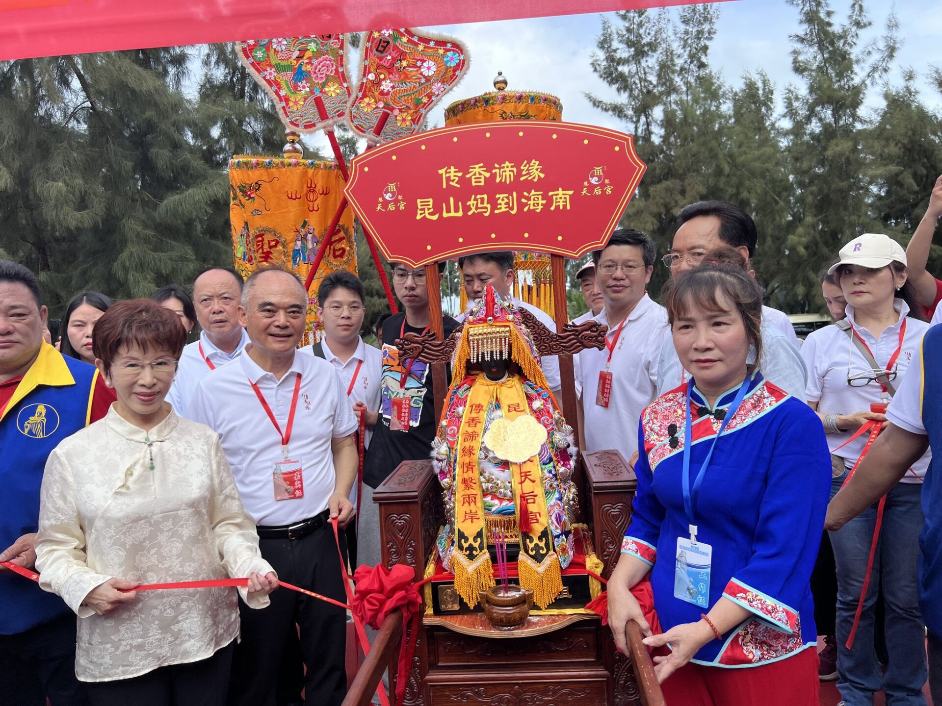 9月26日一早,昆山慧聚天后宮漆器媽祖在莊嚴的哨角聲中起駕,由中國國民黨前主席、中華青雁和平教育基金會董事長洪秀柱與昆山媽祖文化交流協會、昆山慧聚天后宮負責人孫德聰,帶領昆山台協青年會、兩岸同胞共同組成的92人護駕團,恭請媽祖起駕前往海南臨高天后宮「傳香諦緣」。