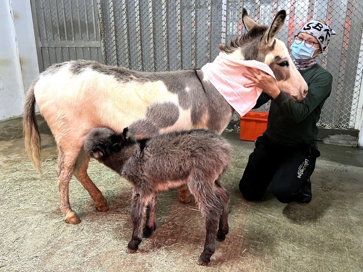 另一邊,迷你驢家族的誕生故事同樣動人。迷你驢媽媽「花花」原本與公驢「史瑞克」分開飼養,但保育員發現「花花」的叫聲能讓「史瑞克」躁動不安,並癡癡望著牠的方向,於是決定讓這對有情驢相見,果然一見鍾情。經過一年的相處,春節期間「花花」順利誕下一隻毛色深灰、蓬鬆可愛的小驢,並取名為「澎澎」。這隻迷你驢個性溫馴、親人,經常輕咬保育員的褲腳撒嬌,還特別喜歡被梳毛,逗趣模樣讓人愛不釋手。