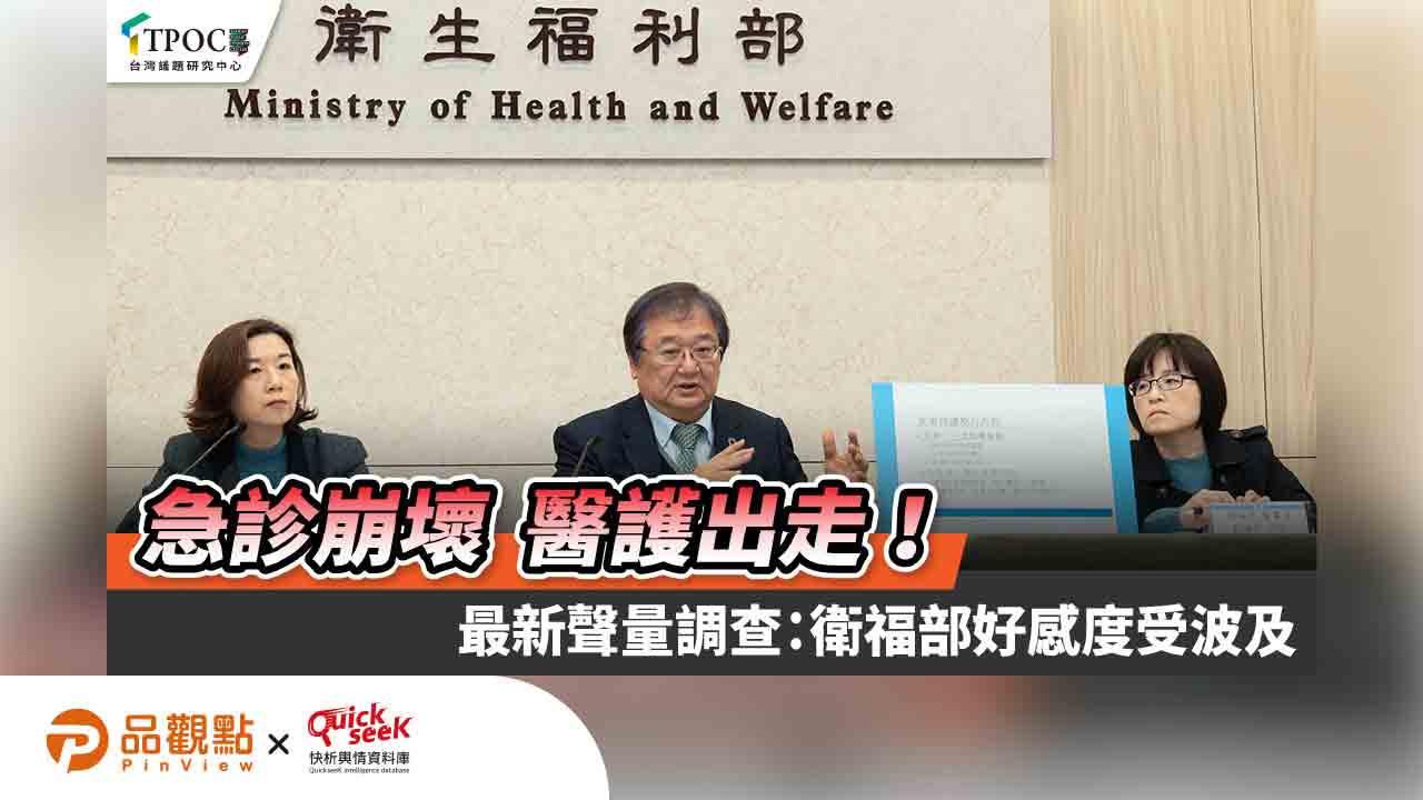 全台各大醫院急診室壅塞問題引來網路輿情高度矚目,批評聲浪除了一般網友之外,還有不少聲音發自醫界,導致衛福部的網路好感度因此受到波及。由此可知,衛福部恐怕需要依照醫界建議,進一步強化醫療資源分流、改善醫護人員待遇,也要注意加強政策溝通,才能重建公眾信任。