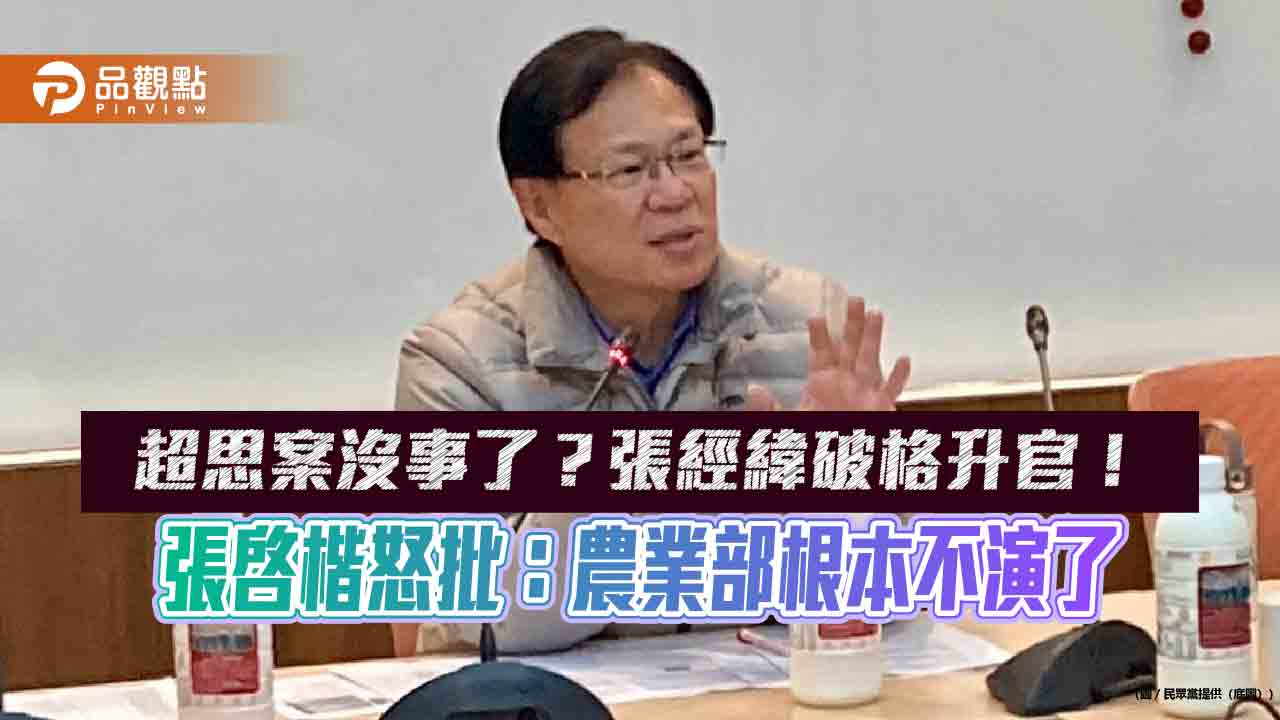 張啓楷痛批,農業部這次讓張經緯連升兩級,毫不顧慮人民憤怒,難道如今風頭已過,所以「不演了」?在野黨這次嚴審農業部預算,為納稅人看緊荷包,農業部卻依舊我行我素,不在意民怨,也漠視立法院。