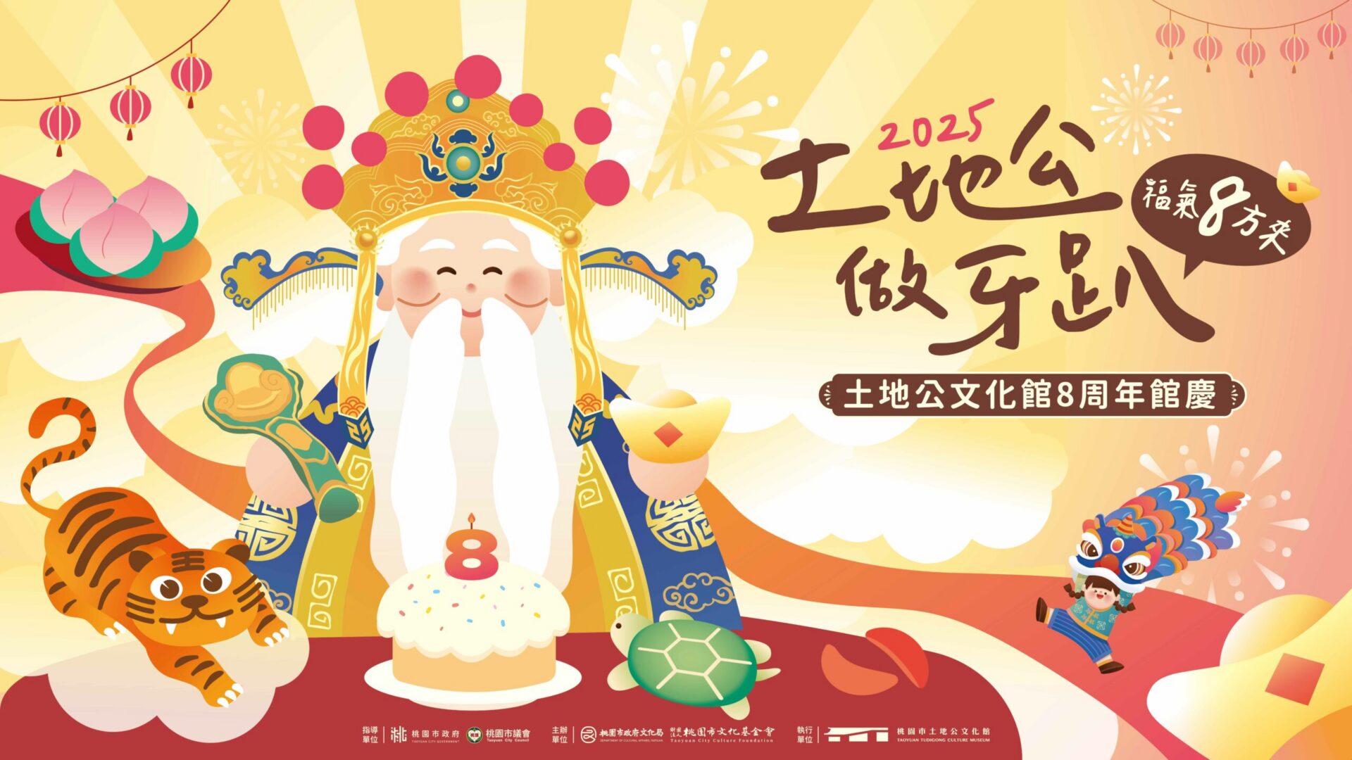 桃園市土地公文化館即將迎來八周年館慶,特別選在114年3月1日(六),農曆二月初二「土地公生」這個吉祥的日子,展開為期兩天的系列活動。今年以「福氣八方來」為主題,誠摯邀請市民朋友作伙來「鬥鬧熱」,一起在文化館廟埕(桃園市桃園區三民路一段100號)感受傳統文化的魅力。