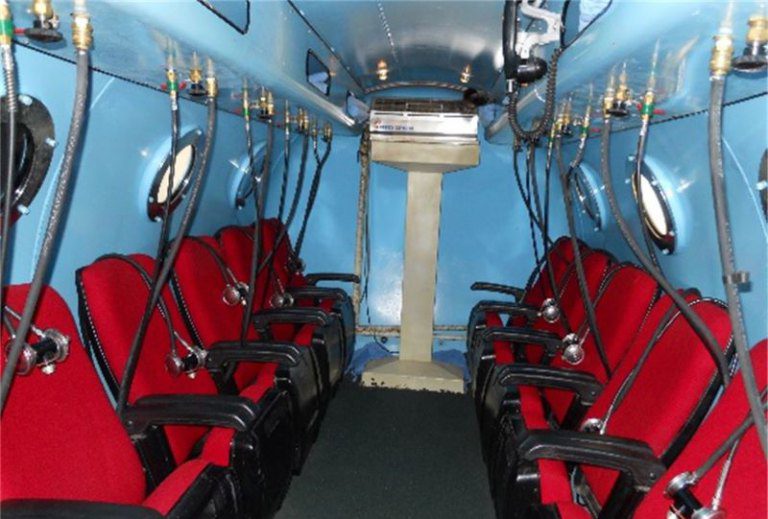 ▲多人座高壓氧艙。(圖/記者蔣彤雲攝)