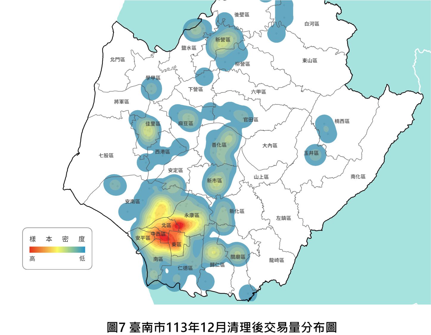 進一步觀察各行政區交易量表現,交易量前三名分別為仁德區(268棟)、北區(252棟)以及永康區(249棟)。與去年同期相比,仁德區和北區增幅最為顯著,本期交易量分別增加339.34%、127.03%,主要是因為區內新建案完工後,第一次移轉登記的案量較去年同期有所增加,增幅分別為1,131.58%和3,225.0%。相比之下,新市區的交易量大幅減少85.26%,南科區域則亦減少逾七成。後續各行政區的交易量是否持續受到央行限貸令的影響仍有待觀察。