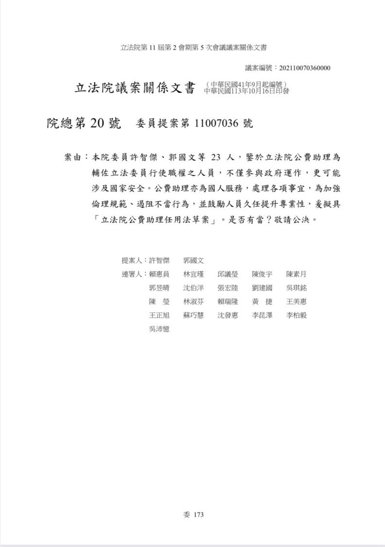 【今傳媒/記者李祖東報導】立委許智傑過去曾提出「立法院公費助理任用法草案」,因為屆期不連續,這一屆再度提出,希望透過公費助理法制化,成為國會改革一大里程碑,許智傑參考美國及日本國會制度,更明確制定公費助理的責任與義務。