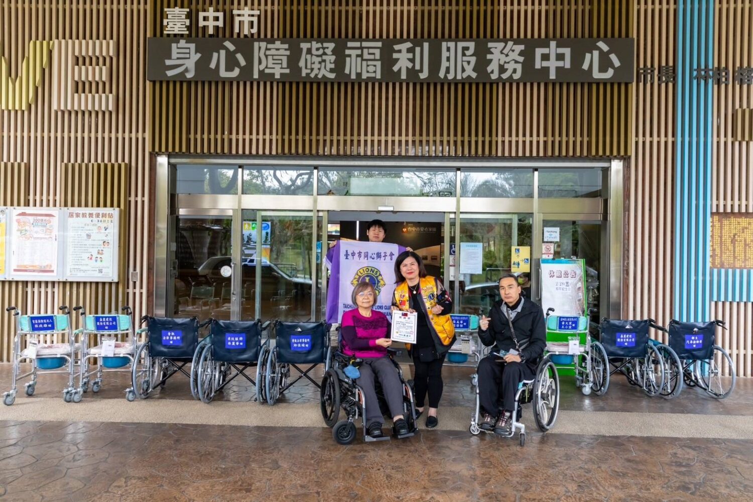 今(27)日國際獅子會300C-3區台中市同心獅子會舉辦二場愛心輪椅捐贈活動,分別捐贈予台中市昇平里以及台中市脊髓損傷者協會。