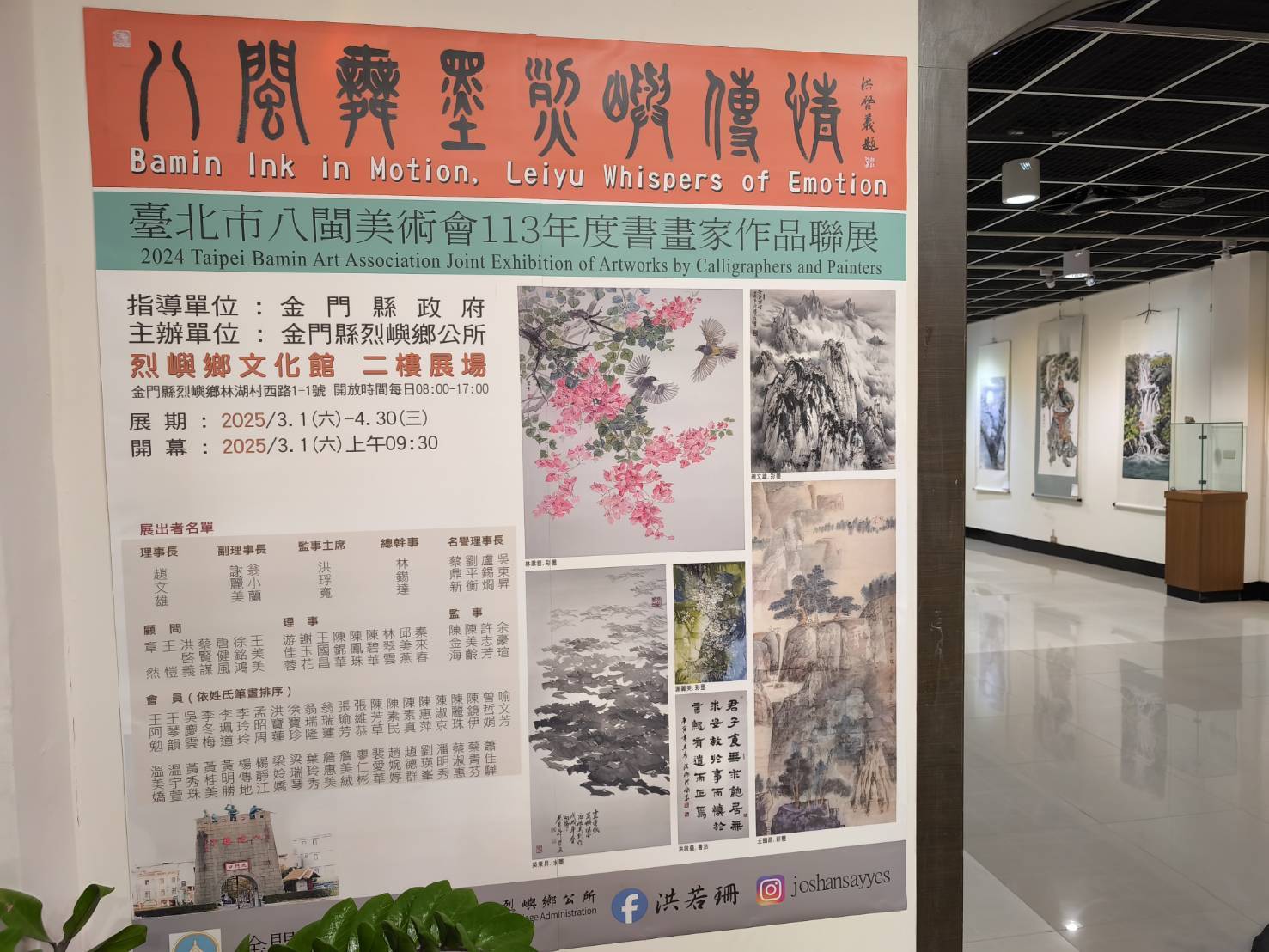 主辦單位提到,烈嶼文化館作為小金門的文化地標,八閩美術會作品聯展以水墨與書法藝術為到訪者帶來乙巳年「蛇來運轉」的「金喜祝福」。邀請各界朋友、藝術愛好者、文化探索者親臨展覽共襄盛舉,共同感受八閩舞墨之美,領略烈嶼傳情的文化風采。