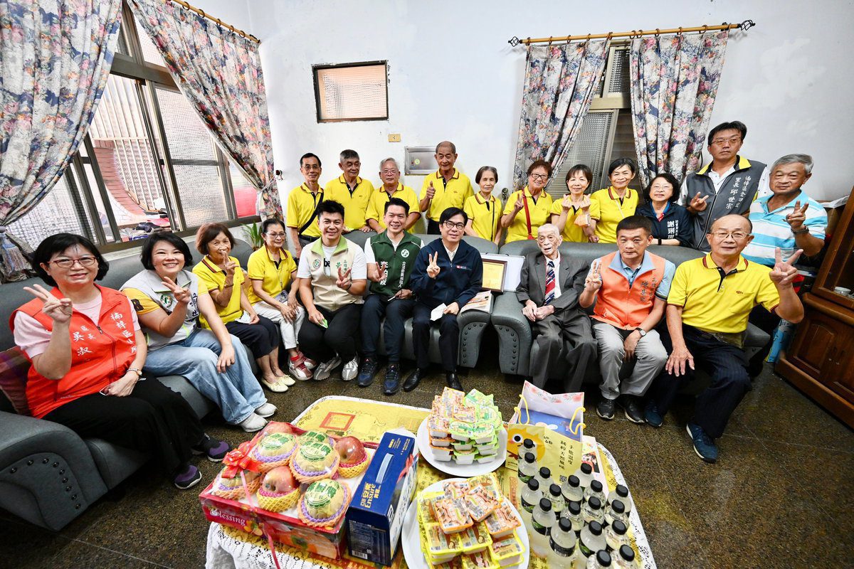 今天是中秋節,是闔家團圓的日子。高雄市楠梓區今年滿百歲的陳新發爺爺四代同堂,開心過節。陳爺爺年輕時刻苦自勵、樂善好義,做人處事為子女標竿,曾榮獲高雄市第46屆模範父親。高雄市長陳其邁特於今日慰訪陳爺爺,並代表衛生福利部致贈金鎖片、敬老狀,及致贈高雄市1萬元重陽禮金,祝福陳爺爺幸福安康。