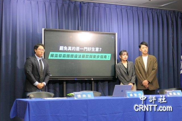 國民黨今天召開“罷免真的是一門好生意?揭露惡罷團體違法募款與奧步指南!”記者會,包括國國民黨發言人楊智伃、副發言人鄧凱勛、副發言人譚仲彣等人出席,會中提出罷免藍委團體內部訊息,質疑惡罷團體涉及違法募款。