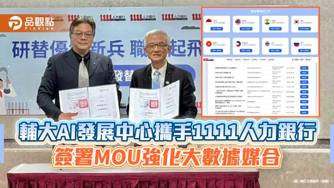 輔仁大學人工智慧發展中心(AI發展中心)近日與台灣知名求職平台1111人力銀行簽署合作備忘錄(MOU),宣佈將聯手推動人工智慧(AI)技術在人力資源領域的創新應用,更同步合辦僑外生線上徵才博覽會,即日起為來台就學的國際僑生和外籍生,提供全職、兼職、實習及打工等多元工作機會,同時讓台灣企業接觸更廣泛的國際人才來源,達成企業與人才雙贏的局面。