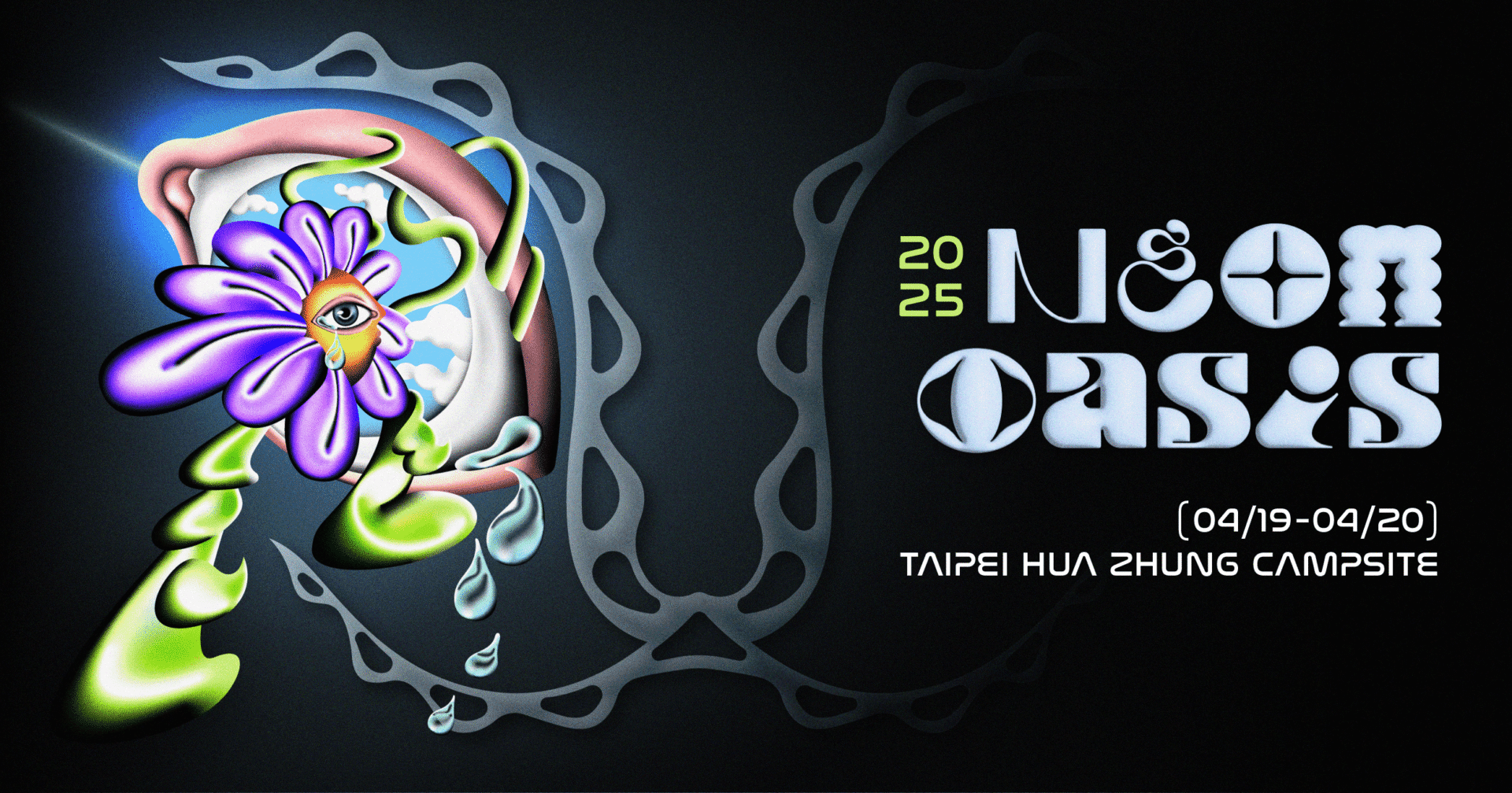 自2023年起,《霓虹綠洲音樂祭》連續兩年以「綠洲」為題,邀集來自世界各地多座城市的音樂人,於台北郊區山林帶來遠離喧囂的自然與音韻。而今年邁入第三屆的《霓虹綠洲音樂祭》則以「霓虹」為全新主軸,並於4月19、20日在萬華的「華中露營場」帶來一場跨越時空的都市音樂盛會。