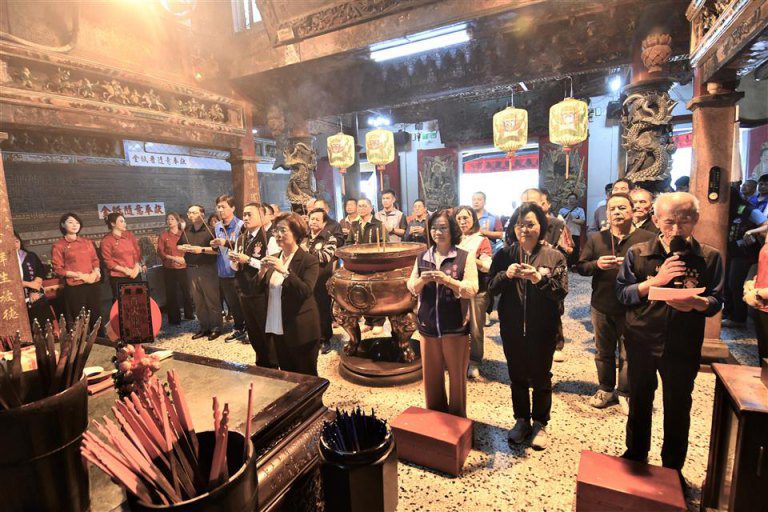 ▲王縣長等人祈求國泰民安、風調雨順、縣運昌隆、闔家平安大賺錢及活動平安圓滿。(圖╱記者孔亮云翻攝)