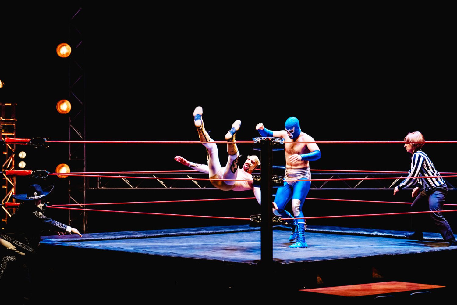 「舞台上搭建的擂台看似和正規摔角比賽的擂台一樣,但暗藏了許多機關,可以迅速變成一個馬戲表演的場地。」動作設計奧利維耶.諾曼德(Olivier Normand)2年前曾到歌劇院,擔任《庫維爾1975:青春浪潮》的獨角戲演員。他說,摔角包含了暴力元素,但也像是一場遊戲,演出當中有很多不同符碼;這次將馬戲和摔角一起帶到舞台上,看看能否突破人體極限,也希望現場觀眾能大聲歡呼喝采、或是噓聲,把能量投射到舞台上,和演員們互相成就這場表演。
