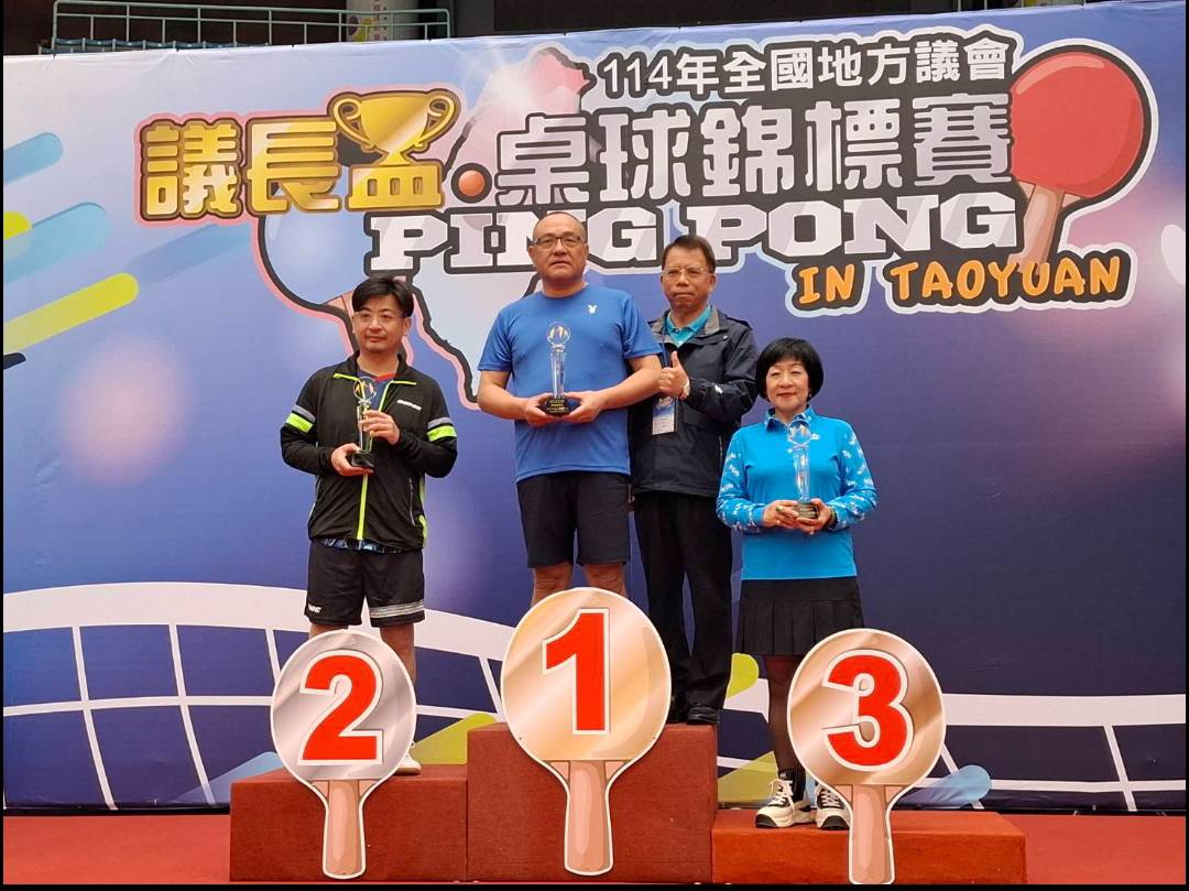桃園市議會議長在頒獎典禮上,感謝全國各地方議會的熱情參與,也感謝所有工作人員的辛勞付出,讓賽事得以順利進行。本次賽事圓滿落幕,下屆賽事將由苗栗縣議會接棒主辦,苗栗縣議長作為首長組單打四連霸冠軍的桌球愛好者,也預約明年與大家再度同場競技,共同延續這份友誼與競技精神!