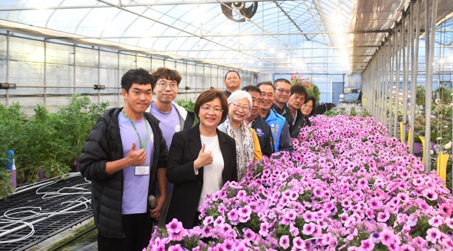 王惠美表示,這次來訪視的香久園,由兩位青農謝丞傑、匡易共同經營,相當有創意,且研發許多新品種的花卉,是青年創業的典範;彰化縣為農業大縣,花卉生產面積約有886公頃,葡萄及火龍果等果樹生產面積更高達1528公頃,花卉、葡萄及火龍果栽培生產可藉由燈具照明來調節作物產期及提高品質與產量,感謝在議長謝典林及議員們的支持下,縣府補助節能燈泡,希望能減輕花農的負擔。