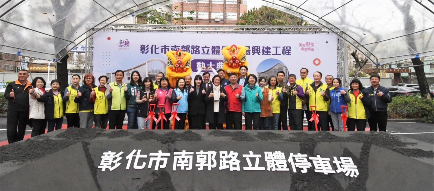 【焦點時報/記者林明佑報導】為解決縣府、永樂街及彰基商圈停車問題,彰化縣政府6日舉行「彰化市南郭路立體停車場」動土典禮,縣長王惠美表示,停車場規劃地下一層、地上四層,提供280席汽車位及610席機車位,並設有商業空間,總工程經費5.4億元,工期560天,預計115年9月完工,盼紓解交通壓力並促進地方發展。