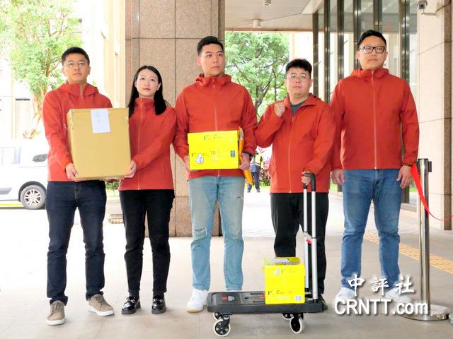 “地動刪瑤”團隊赴中選會補送罷免綠委吳思瑤第一階段連署提議書。(中評社)
