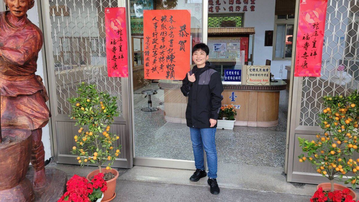 臺東縣警察局關山分局書記陳怡穎,自五專畢業後即決心投身公職,憑藉不懈努力,一步一腳印地向上提升,終於在今(114)年3月5日,以高分佳績脫穎而出,成功考取「113年特種地方政府公務人員人事行政三等花東區特考」,榮獲薦任科員資格,為個人職涯寫下光輝篇章。為表揚陳怡穎的優異表現,關山警察分局長鍾國楨及鎮長彭成豐特於本(7)日9時,親自贈送紅榜並張貼於分局大門口,與全體同仁共享這份榮耀。分局長官對其不畏挑戰、堅持不懈的精神讚譽有加,認為她的努力是年輕公務人員的楷模,也激勵更多同仁勇於精進、追求卓越。