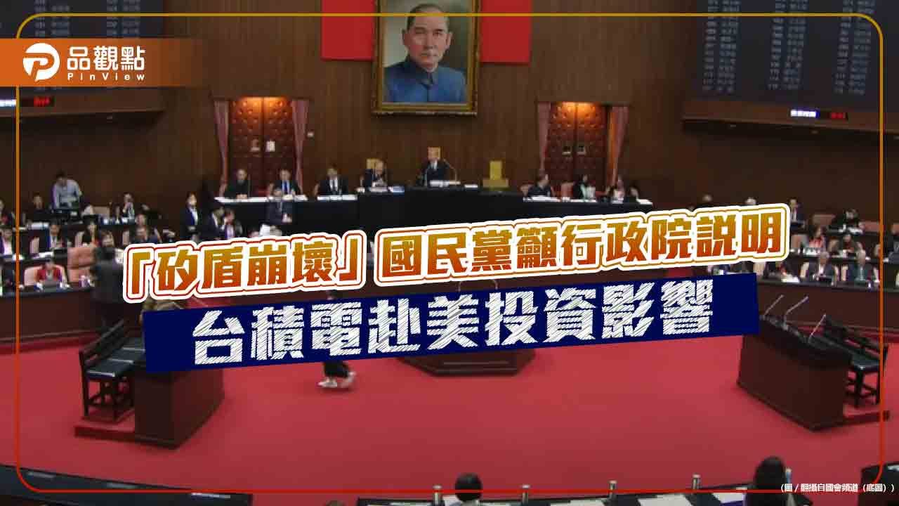 國民黨立法院黨團今(7)日在院會提案,要求行政院長卓榮泰率相關部會首長針對「台積電赴美加碼投資違背台灣優先承諾危及國安」案進行專案報告。國民黨團指出,在美國總統川普以高關稅施壓下,台積電被迫在白宮宣布加碼投資1000億美元,但台灣政府在整個過程中完全缺席。