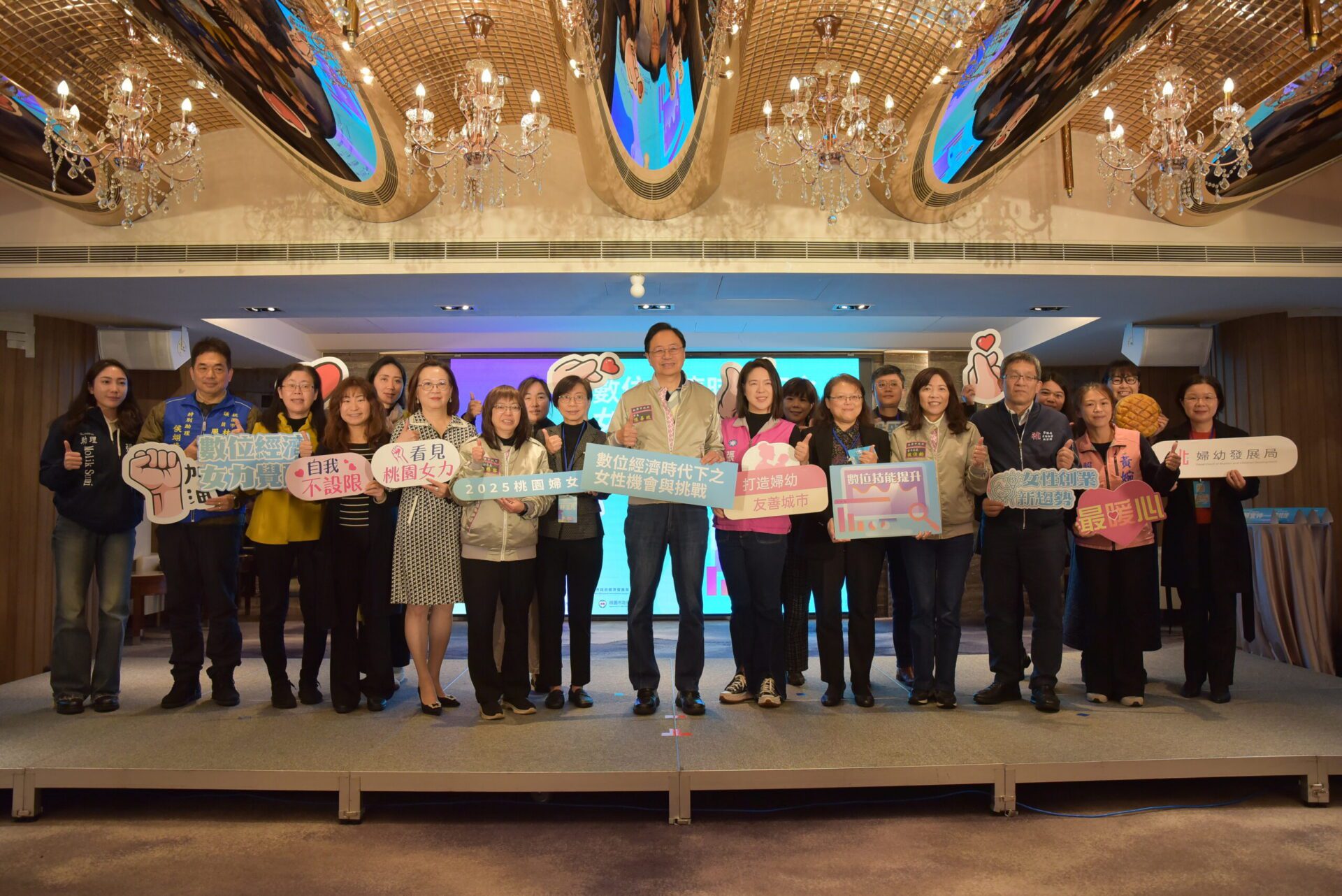 為響應國際婦女節,桃園市政府於3月8日於尊爵飯店國際會議廳盛大辦理「數位經濟時代下之女性機會與挑戰」論壇,邀請來自產官學界的專家及學者,共同探討女性在數位經濟下的角色轉變、創業機會與挑戰。論壇吸引眾多關心性別平等與數位發展的機關及民間團體參與,現場氣氛熱烈。