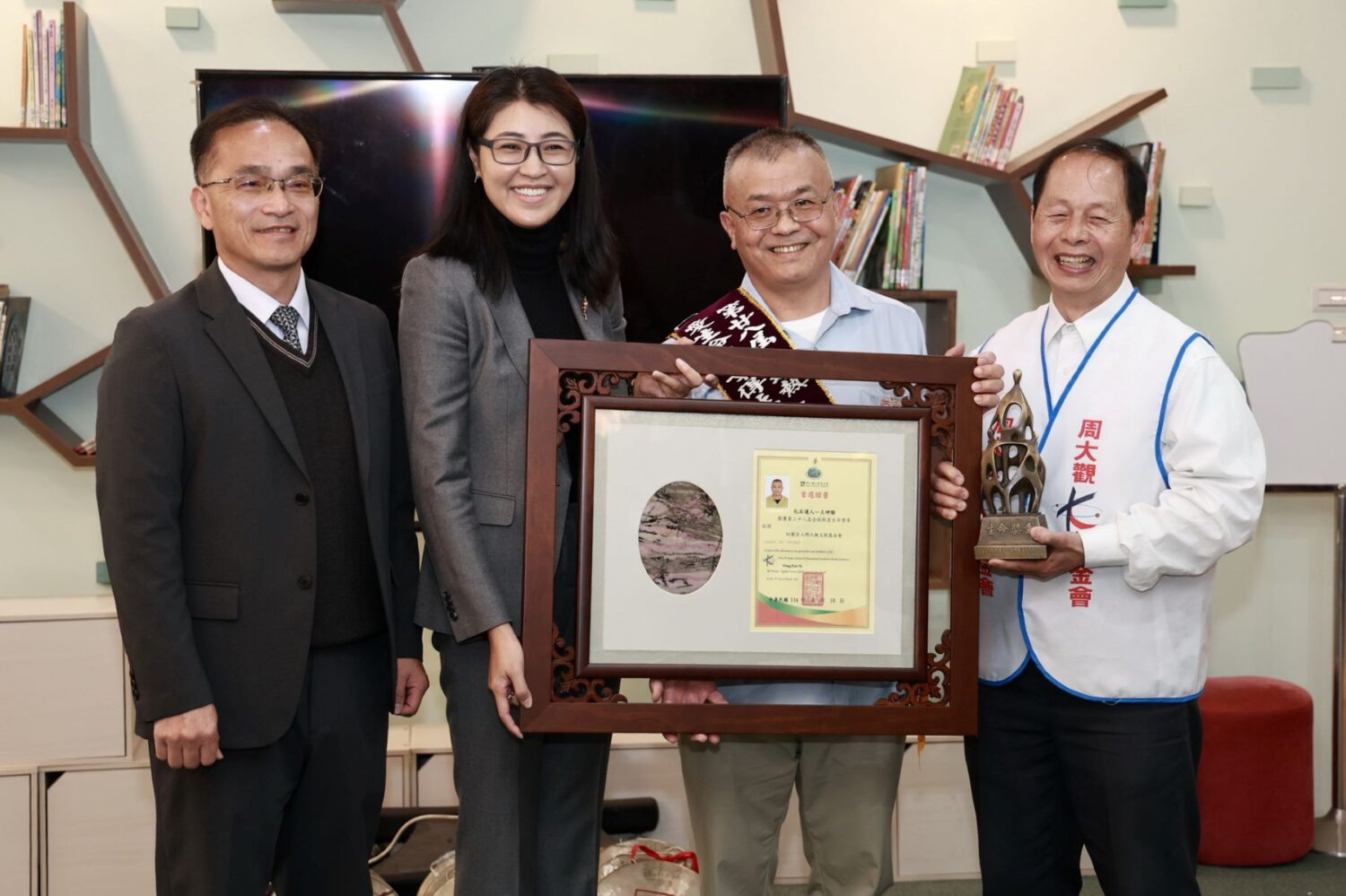 許縣長表示,王老師從師專畢業後一直留在家鄉從事教育工作,無論是在戶外生態教學,或是課後從事化石挖掘與研究,都是投入畢生心血,專一而投入的生命態度,讓人感動,加上他自己雖罹患憂鬱症,但仍能以自身經歷鼓勵更多病友,以生命感動生命,就像千萬年前的生物形成化石讓生命延續,南投很榮幸能有這樣的國寶級人物,也特別感謝周大觀文教基金會長年推廣「全球熱愛生命運動」,讓我們一同看見生命中的無限可能。