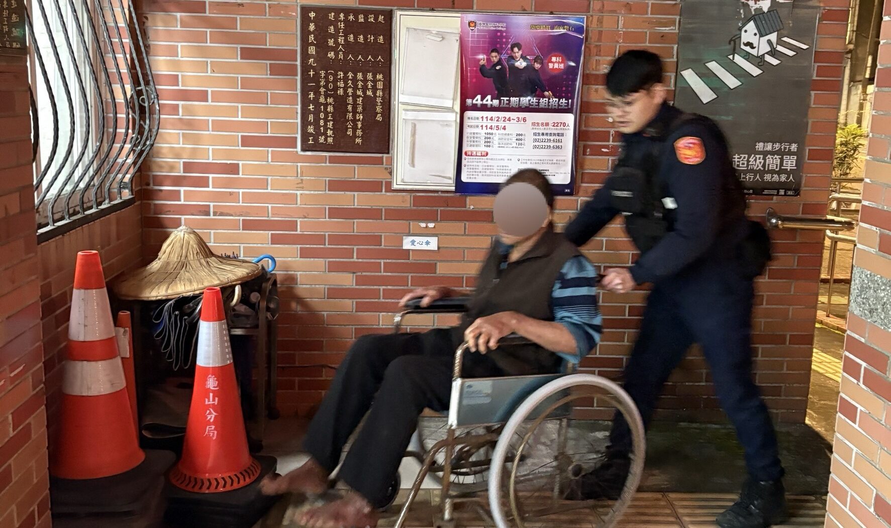 警方提到,昨日凌晨員警巡邏龜山區壽山路附近的假日花市,發現老翁於寒夜中僅穿著短袖赤腳踽踽獨行,口中反覆唸著「我要回家洗澡」,隨即上前關懷提問,老翁有失智情形無法清楚應答,且於寒風中身體不住顫抖,員警便先將其帶返派出所休息,提供溫暖照護,但老翁依然無法提供個人資訊,故員警協助老翁拍照,於桃園警察內部大群組廣發協尋訊息,青溪派出所員警表示當天上午有受理一起老翁走失案件,經聯繫該派出所進行身分比對確認就是走失的老翁,警方成功聯繫家屬到所接回老翁,家屬十分感謝警方幫助找回走失的老伴,兩人搭車返家休息。