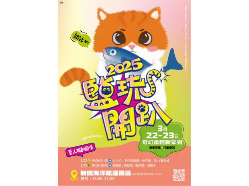 本次活動更特別打造專屬園區IP角色「園仔」貓咪,原是一隻浪浪的牠,現在幸福生活在新園海洋航運園區,期望所有浪浪都能擁有幸福平安的生活,總是叼著一尾黃鰭鮪魚,象徵豐饒與溫飽,為園區注入溫暖故事,也同時展現我們對於動物友善與地方文化的深耕。