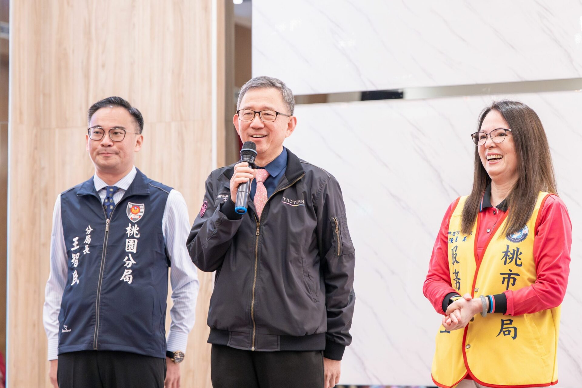 桃園市副市長王明鉅昨(12)日晚間前往桃園區,出席「桃園市政府警察局桃園志工中隊113年績優志工表揚暨聯誼活動」。王明鉅表示,感謝志工夥伴們一直以來對市府的鼎力支持,包含義警、義交跟巡守等兄弟姊妹們都是市府的強力後援,讓有限的警力能運用在最為迫切的地方,協力守護桃園交通跟治安。