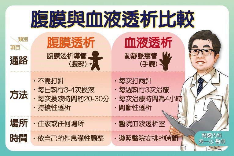 3月13日是「世界腎臟日」,全球倡議關注腎臟健康時,臺灣腎臟病人數已高達263萬人,相當於每9人就1人有慢性腎臟病。面對末期腎衰竭,透析治療是延續生命的關鍵,但血液透析須頻繁往返醫療院所,腎友生活步調只能大改變。台中慈濟醫院腎臟科主任陳一心指出,近年來「腹膜透析」因兼具療效與生活彈性,逐漸成為腎友的新選擇,像50歲業務孫先生就是透過腹膜透析以兼顧工作與生活。