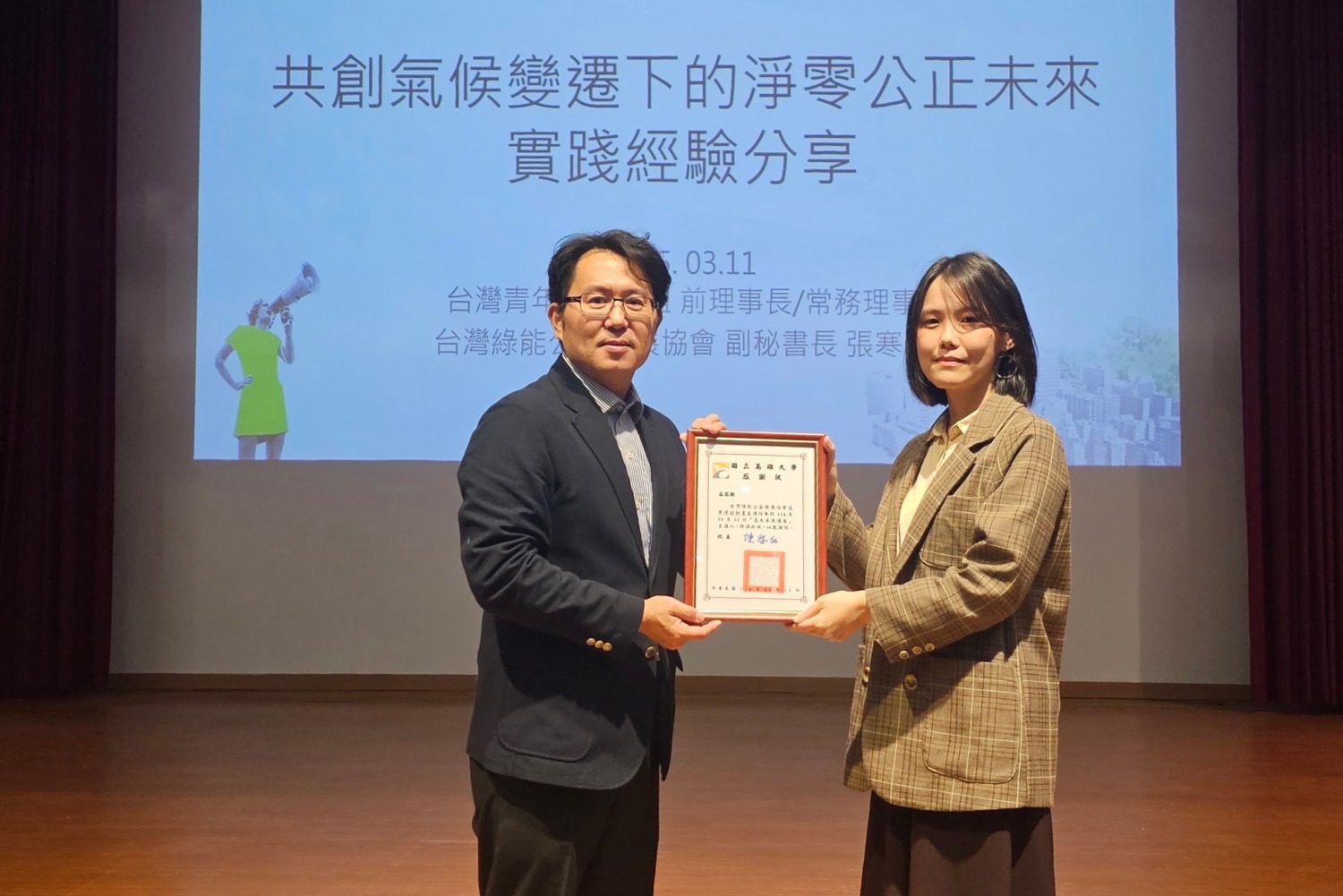 國立高雄大學於11日舉辦《卓越講座》,邀請台灣綠能公益發展協會副秘書長張寒瑋,以**「共創氣候變遷下的淨零公正未來:實踐經驗分享」為題,深入剖析氣候變遷對台灣與全球的影響,並強調青年在淨零轉型中的關鍵角色**。