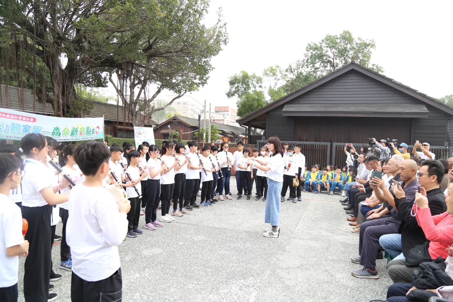 國立嘉義大學附設實驗國民小學沈桂枝校長表示,嘉大附小學生在學習博物館策展課程後,深入探討嘉義市老舊木屋的活化與再利用,並將這些思考帶入設計學習計畫。學生們以「重生」為核心概念,創作摺頁冊與書籤等藝術作品,詮釋木屋改造的過程,並反思自身與城市的關聯。在這次的展覽中,學生們不僅是創作者,也是理念的傳達者,將設計思考與文化策展相結合,策劃了一場前所未見的「森命新奇點s」特展,期望以藝術激發舊監宿舍群的新活力,呈現「光」與「韌」交織的「嘉」園意象,展現學生創意與團隊合作的精彩成果。