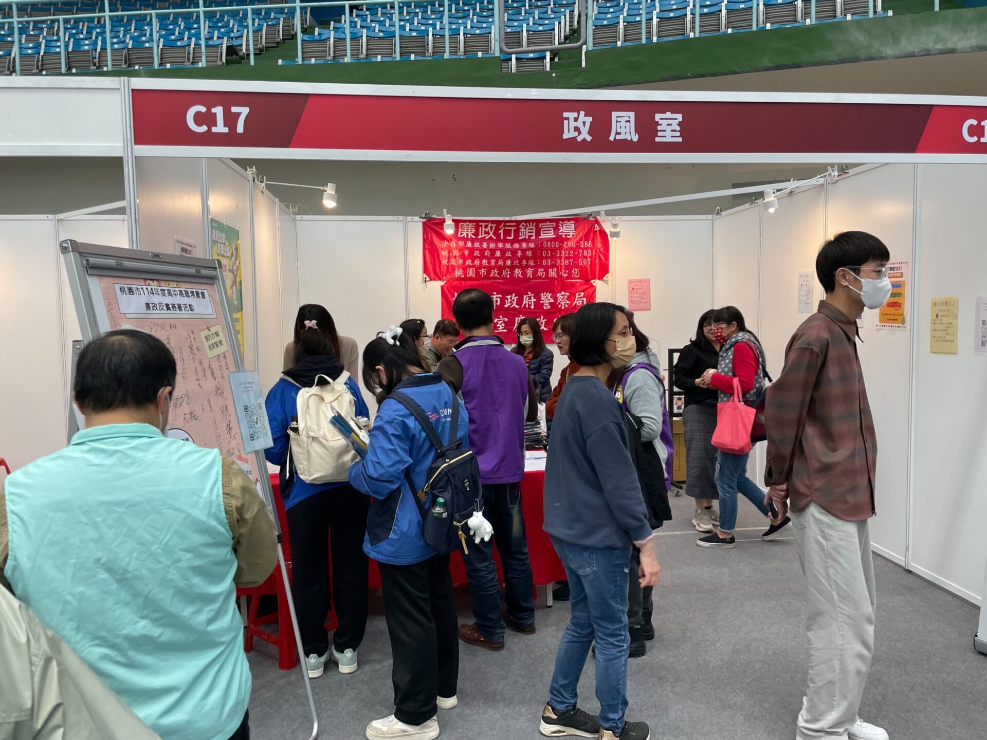 桃園市教育局政風室為推動校園誠信品格教育,特在「桃園市114年度高中高職博覽會」,攜手警察局、消防局、衛生局、復興區公所、龜山區公所及桃園榮譽國民之家等6個政風單位,共同辦理廉政宣導活動,期透過豐富趣味遊戲,將陽光透明、廉能政府的理念,深植於大小朋友心中,並進一步提升全民反貪意識,響應市長「持續提升桃園教育品質」的期許。