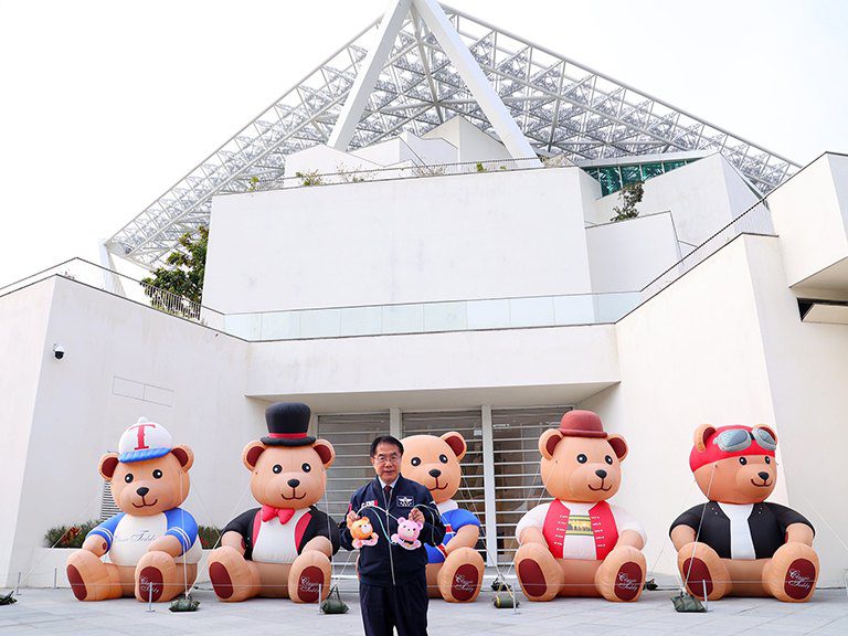 ▲黃偉哲邀白色情人節「熊愛臺南」!5大泰迪熊萌翻南美館。(圖/記者吳玉惠翻攝)