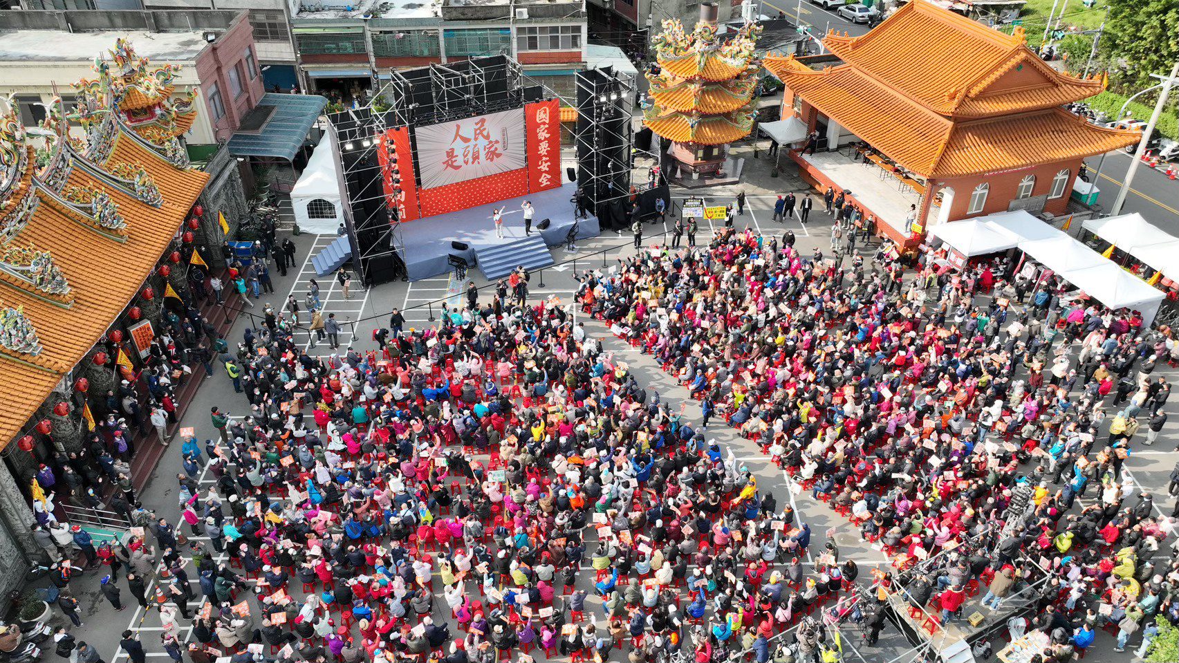 這場在中壢大崙崇德宮前宣講,卓榮泰率行政院秘書長龔明鑫、內政部長劉世芳、民進黨秘書長林右昌,以及服務桃園市的4位不分區立委張雅琳、林月琴、郭昱晴、王義川、民進黨發言人吳崢、歷史作家李文成接力上台。